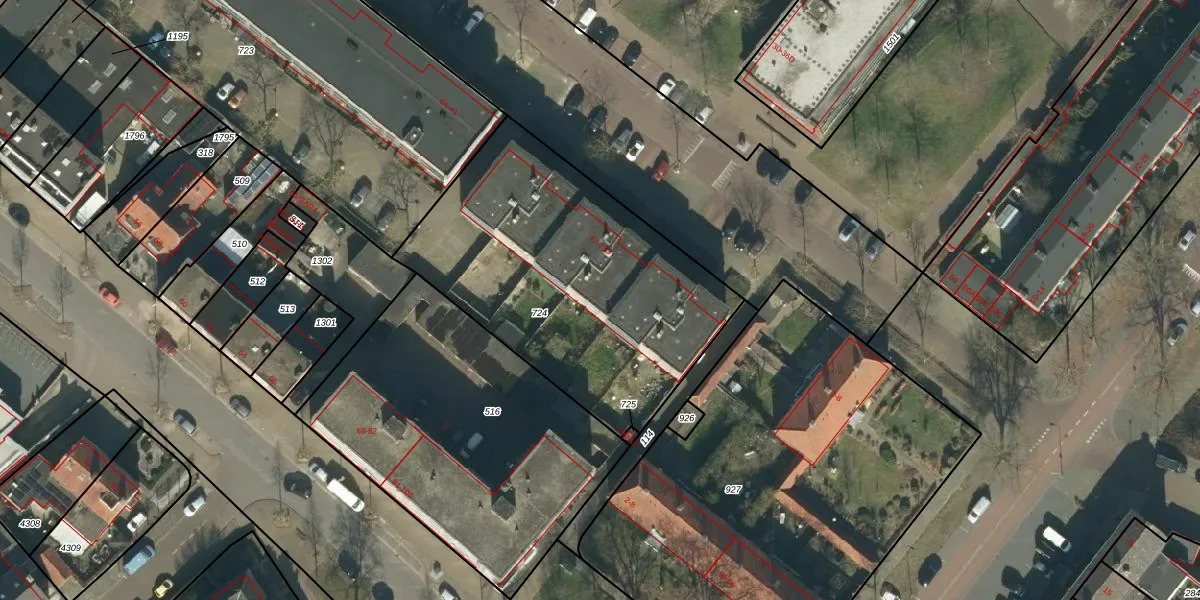 Het adres is gelegen op perceel 724 in de sectie F en de kadastrale gemeente Oss. De kadastrale aanduiding is aldus OSS00-F-724. Het perceel is kleiner dan gemiddeld in Oss. Het perceel is 1505 m² groot, terwijl het gemiddelde ligt op 2394,12 m². Het grootste perceel in de kadastrale gemeente is 36,1 ha. Het kleinste perceel heeft een oppervlakte van 0 m². Op het perceel liggen in totaal 18 adressen. In de Basisregistratie Kadaster (BRK) werden de grenzen van het perceel geregistreerd op 24-06-2009.