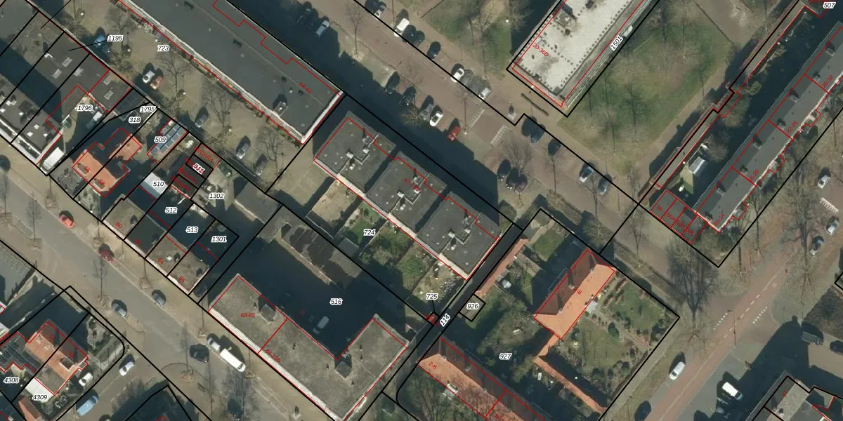 Het adres is gelegen op perceel 724 in de sectie F en de kadastrale gemeente Oss. De kadastrale aanduiding is aldus OSS00-F-724. Het perceel is 1505 m² groot. Dat is kleiner dan de gemiddelde perceeloppervlakte in Oss, dat op 2393,82 m² ligt. De grootste perceeloppervlakte in de kadastrale gemeente is 36,1 ha. De kleinste oppervlakte bedraagt 0 m². Op het perceel zijn 18 adressen aanwezig. De laatste wijziging in het de Basisregistratie Kadaster (BRK) was op 24-06-2009.