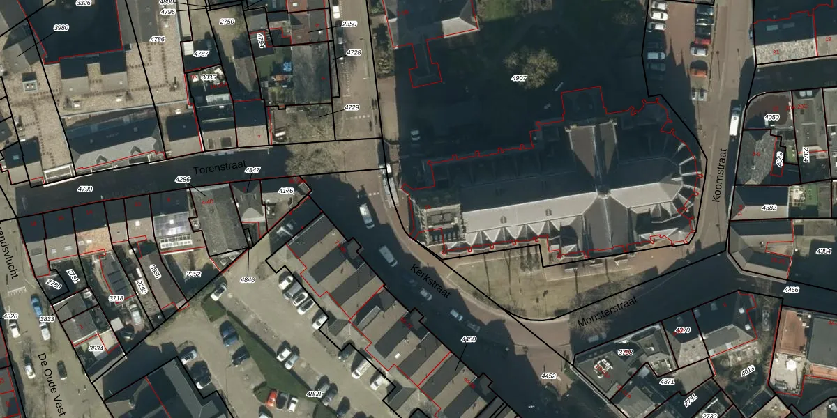 Kerkstraat 15 is gelegen op kadastraal perceel OSS00A4907. Deze kadastrale aanduiding is uniek en wordt gebruikt door het Kadaster om eigendomsrechten en andere zakelijke rechten vast te leggen. Het perceel maakt onderdeel uit van de kadastrale gemeente Oss.