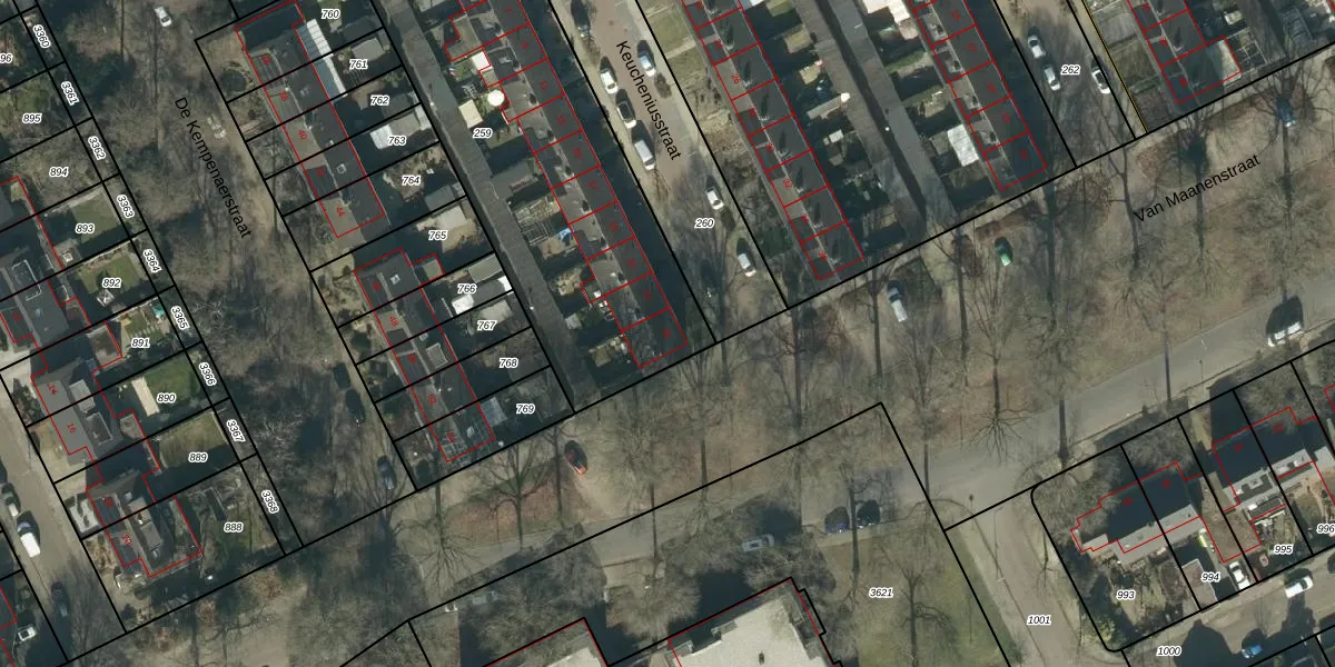 Keucheniusstraat 25 is gelegen op kadastraal perceel OSS00L259. Deze kadastrale aanduiding is uniek en wordt gebruikt door het Kadaster om eigendomsrechten en andere zakelijke rechten vast te leggen. Het perceel maakt onderdeel uit van de kadastrale gemeente Oss.