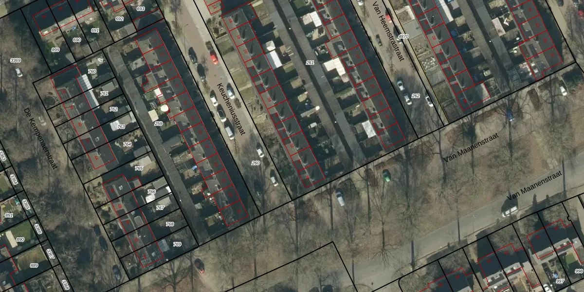 Keucheniusstraat 32 is gelegen op kadastraal perceel OSS00L261. Deze kadastrale aanduiding is uniek en wordt gebruikt door het Kadaster om eigendomsrechten en andere zakelijke rechten vast te leggen. Het perceel maakt onderdeel uit van de kadastrale gemeente Oss.