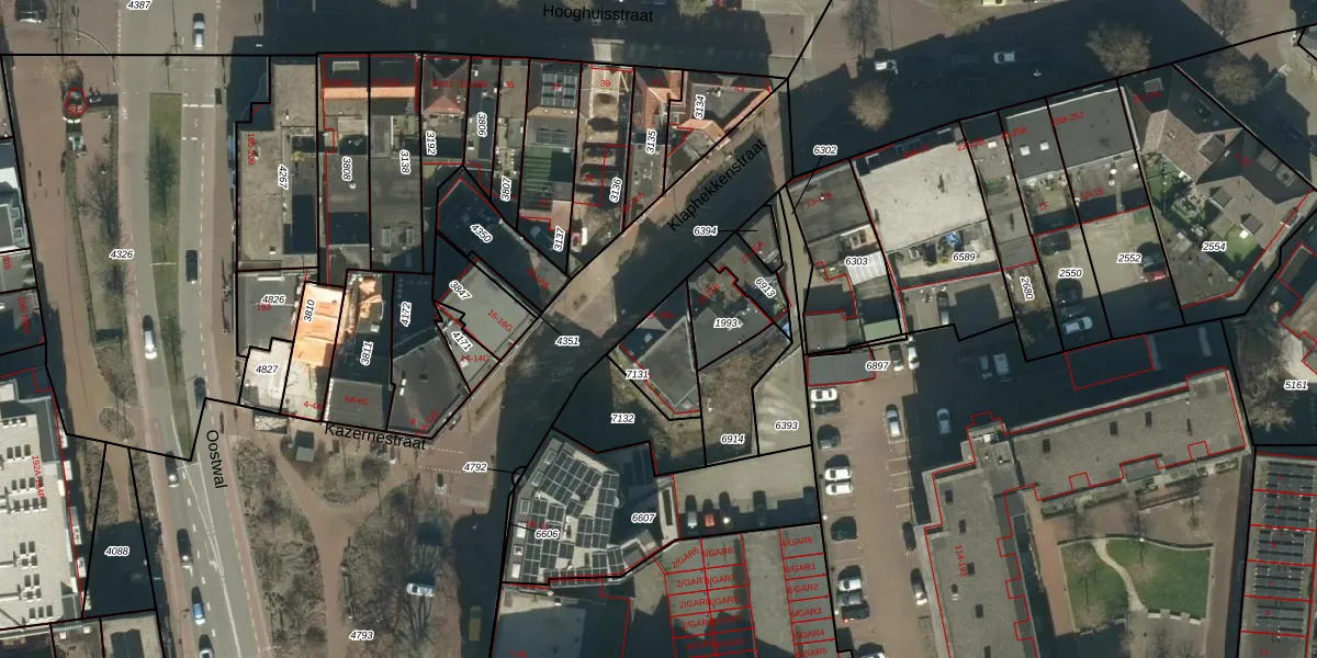 Het adres is gelegen op perceel 7131 in de sectie E en de kadastrale gemeente Oss. De kadastrale aanduiding is aldus OSS00-E-7131. Het perceel is kleiner dan gemiddeld in Oss. Het perceel is 170 m² groot, terwijl het gemiddelde ligt op 2394,22 m². Het grootste perceel in de kadastrale gemeente is 36,1 ha. Het kleinste perceel heeft een oppervlakte van 0 m². Op het perceel zijn 5 adressen aanwezig. In de Basisregistratie Kadaster (BRK) werden de grenzen van het perceel geregistreerd op 30-01-2018.