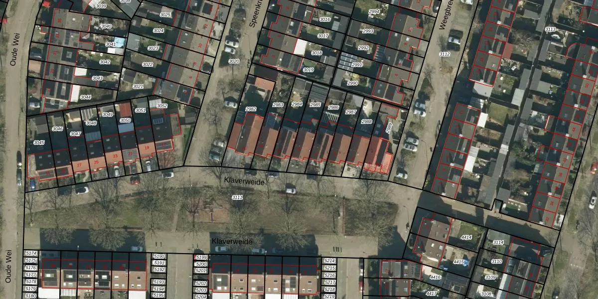 Het perceel waarop Klaverweide 9 staat heeft een oppervlakte van 187 m². Dit is een middelgroot perceel. De perceeloppervlakte wordt geregistreerd door het Kadaster. Gedetailleerde informatie over de maten van dit perceel kunt u vinden in het rapport Kadastrale kaart met maatvoering van Klaverweide 9.
