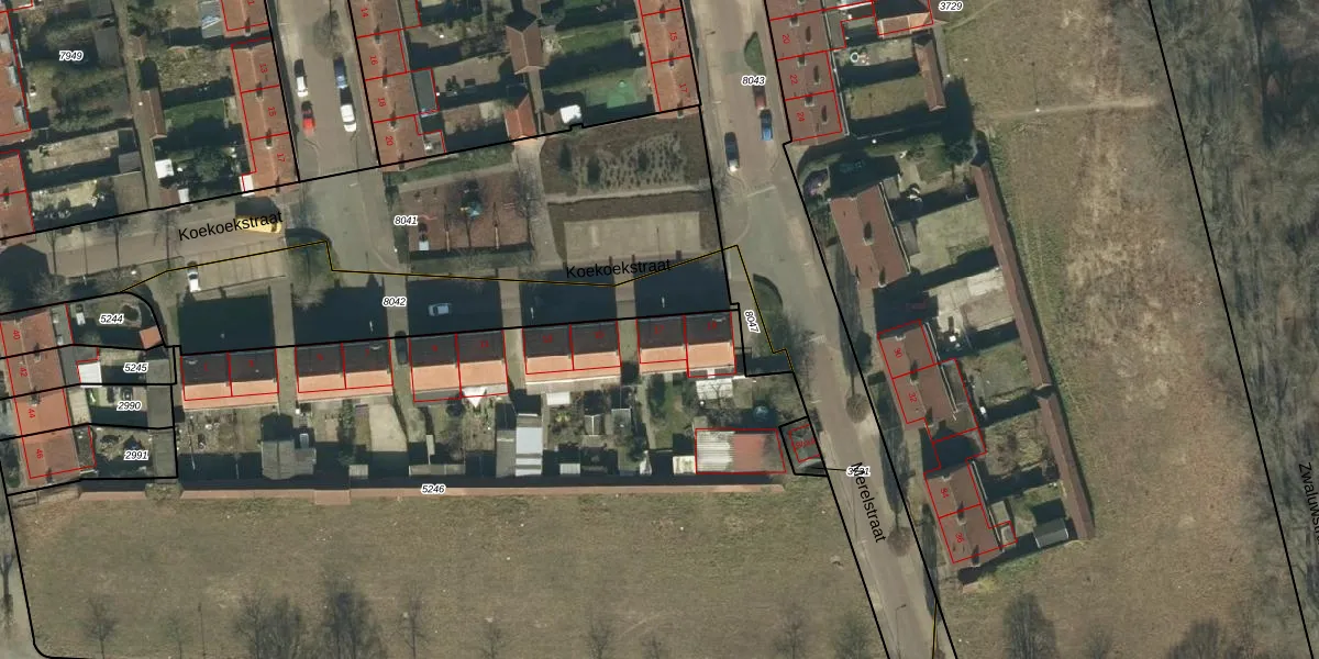 Het perceel waarop Koekoekstraat 17 staat heeft een oppervlakte van 5895 m². Dit is een zeer groot perceel. De perceeloppervlakte wordt geregistreerd door het Kadaster. Gedetailleerde informatie over de maten van dit perceel kunt u vinden in het rapport Kadastrale kaart met maatvoering van Koekoekstraat 17.