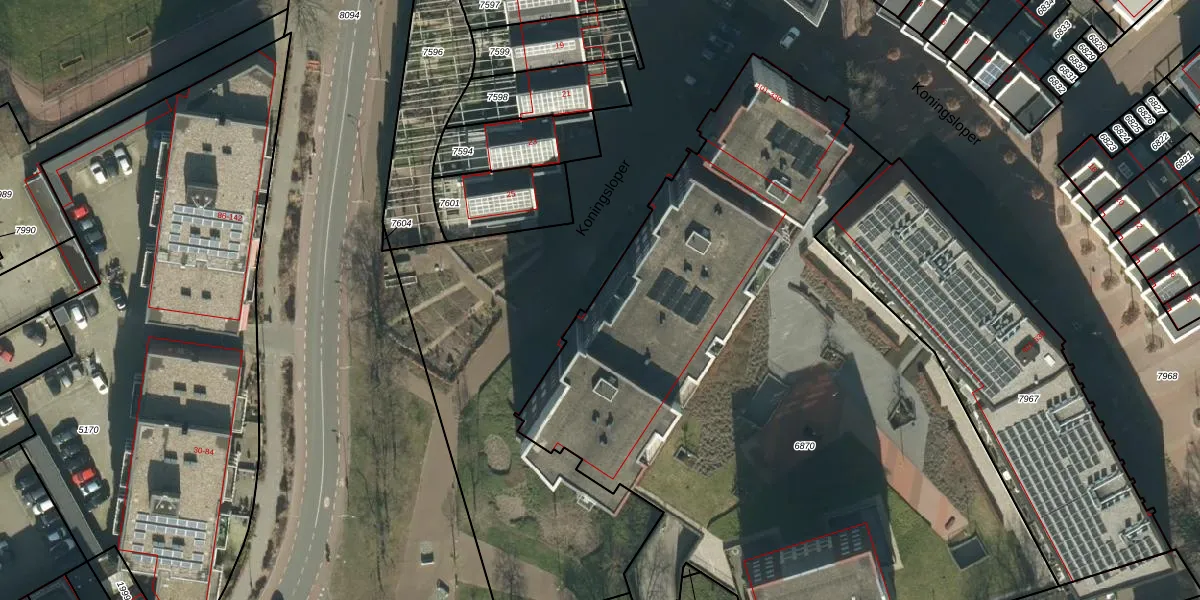 Het perceel waarop Koningsloper 101 staat heeft een oppervlakte van 4709 m². Dit is een zeer groot perceel. De perceeloppervlakte wordt geregistreerd door het Kadaster. Gedetailleerde informatie over de maten van dit perceel kunt u vinden in het rapport Kadastrale kaart met maatvoering van Koningsloper 101.