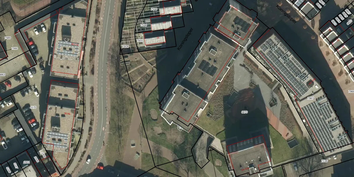 Het perceel waarop Koningsloper 119 staat heeft een oppervlakte van 4709 m². Dit is een zeer groot perceel. De perceeloppervlakte wordt geregistreerd door het Kadaster. Gedetailleerde informatie over de maten van dit perceel kunt u vinden in het rapport Kadastrale kaart met maatvoering van Koningsloper 119.