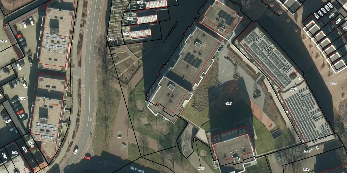 Het perceel waarop Koningsloper 149 staat heeft een oppervlakte van 4709 m². Dit is een zeer groot perceel. De perceeloppervlakte wordt geregistreerd door het Kadaster. Gedetailleerde informatie over de maten van dit perceel kunt u vinden in het rapport Kadastrale kaart met maatvoering van Koningsloper 149.