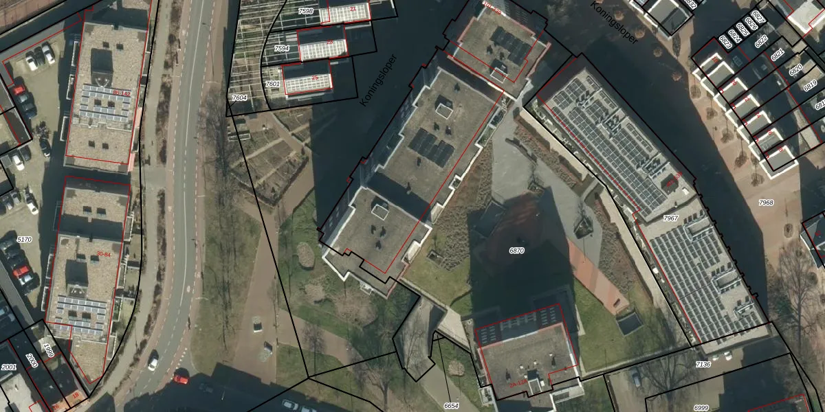 Het perceel waarop Koningsloper 165 staat heeft een oppervlakte van 4709 m². Dit is een zeer groot perceel. De perceeloppervlakte wordt geregistreerd door het Kadaster. Gedetailleerde informatie over de maten van dit perceel kunt u vinden in het rapport Kadastrale kaart met maatvoering van Koningsloper 165.