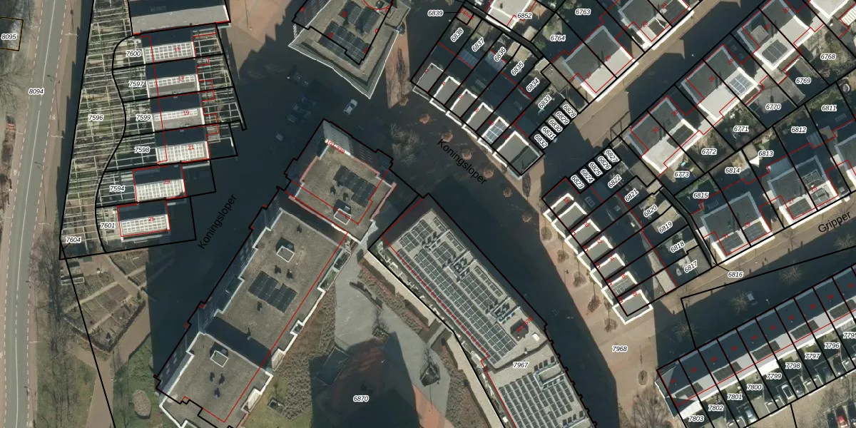 Het perceel waarop Koningsloper 429 staat heeft een oppervlakte van 1433 m². Dit is een zeer groot perceel. De perceeloppervlakte wordt geregistreerd door het Kadaster. Gedetailleerde informatie over de maten van dit perceel kunt u vinden in het rapport Kadastrale kaart met maatvoering van Koningsloper 429.