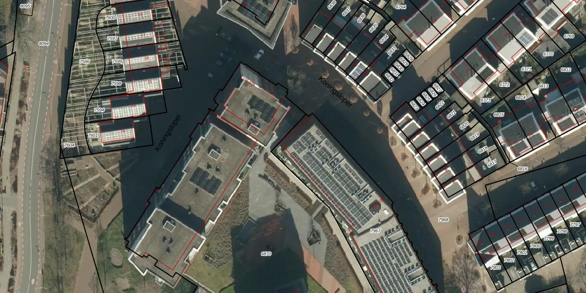 Het perceel waarop Koningsloper 449 staat heeft een oppervlakte van 1433 m². Dit is een zeer groot perceel. De perceeloppervlakte wordt geregistreerd door het Kadaster. Gedetailleerde informatie over de maten van dit perceel kunt u vinden in het rapport Kadastrale kaart met maatvoering van Koningsloper 449.