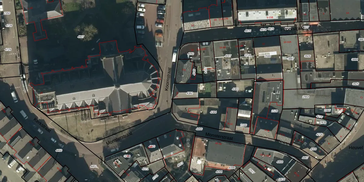 Koornstraat 1-A is gelegen op kadastraal perceel OSS00A4382. Deze kadastrale aanduiding is uniek en wordt gebruikt door het Kadaster om eigendomsrechten en andere zakelijke rechten vast te leggen. Het perceel maakt onderdeel uit van de kadastrale gemeente Oss.