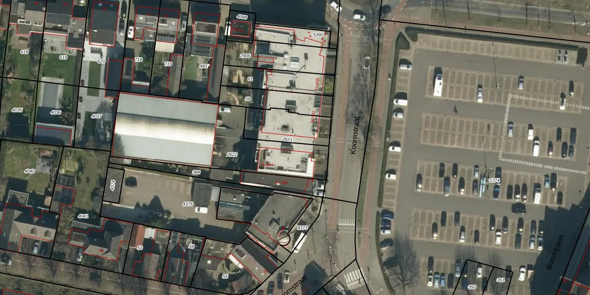 Het perceel waarop Koornstraat 28-E staat heeft een oppervlakte van 1305 m². Dit is een zeer groot perceel. De perceeloppervlakte wordt geregistreerd door het Kadaster. Gedetailleerde informatie over de maten van dit perceel kunt u vinden in het rapport Kadastrale kaart met maatvoering van Koornstraat 28-E.