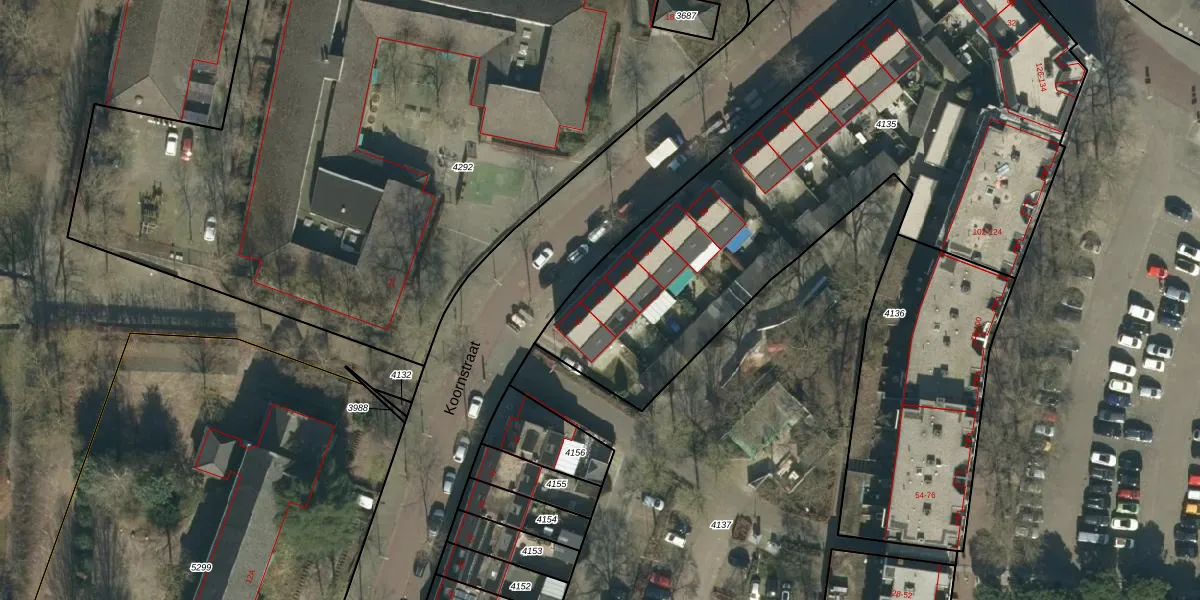 Het perceel waarop Koornstraat 47 staat heeft een oppervlakte van 2815 m². Dit is een zeer groot perceel. De perceeloppervlakte wordt geregistreerd door het Kadaster. Gedetailleerde informatie over de maten van dit perceel kunt u vinden in het rapport Kadastrale kaart met maatvoering van Koornstraat 47.