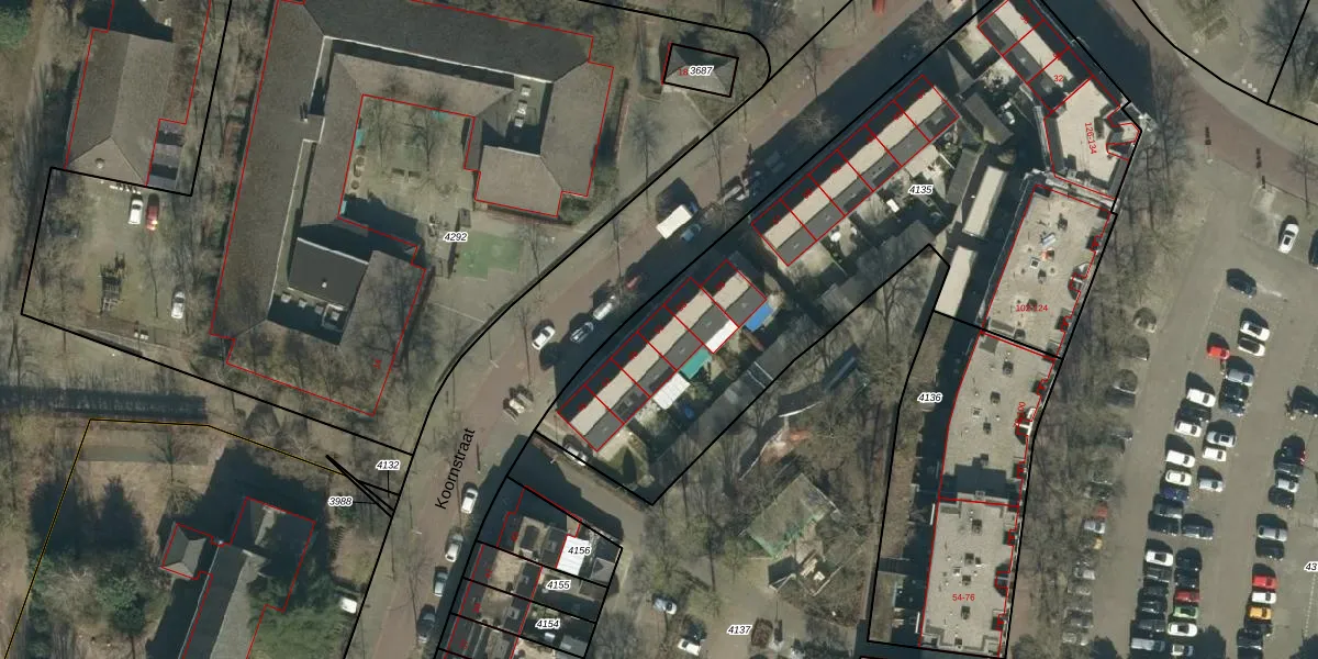 Het perceel waarop Koornstraat 51 staat heeft een oppervlakte van 2815 m². Dit is een zeer groot perceel. De perceeloppervlakte wordt geregistreerd door het Kadaster. Gedetailleerde informatie over de maten van dit perceel kunt u vinden in het rapport Kadastrale kaart met maatvoering van Koornstraat 51.