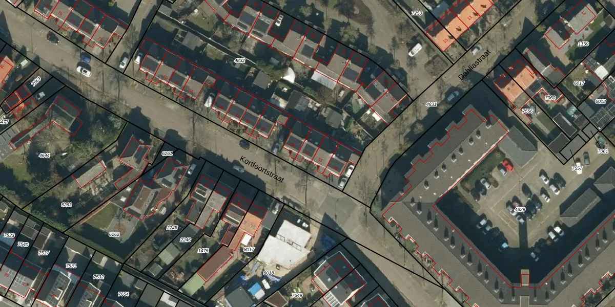 Het perceel waarop Kortfoortstraat 53 staat heeft een oppervlakte van 3427 m². Dit is een zeer groot perceel. De perceeloppervlakte wordt geregistreerd door het Kadaster. Gedetailleerde informatie over de maten van dit perceel kunt u vinden in het rapport Kadastrale kaart met maatvoering van Kortfoortstraat 53.
