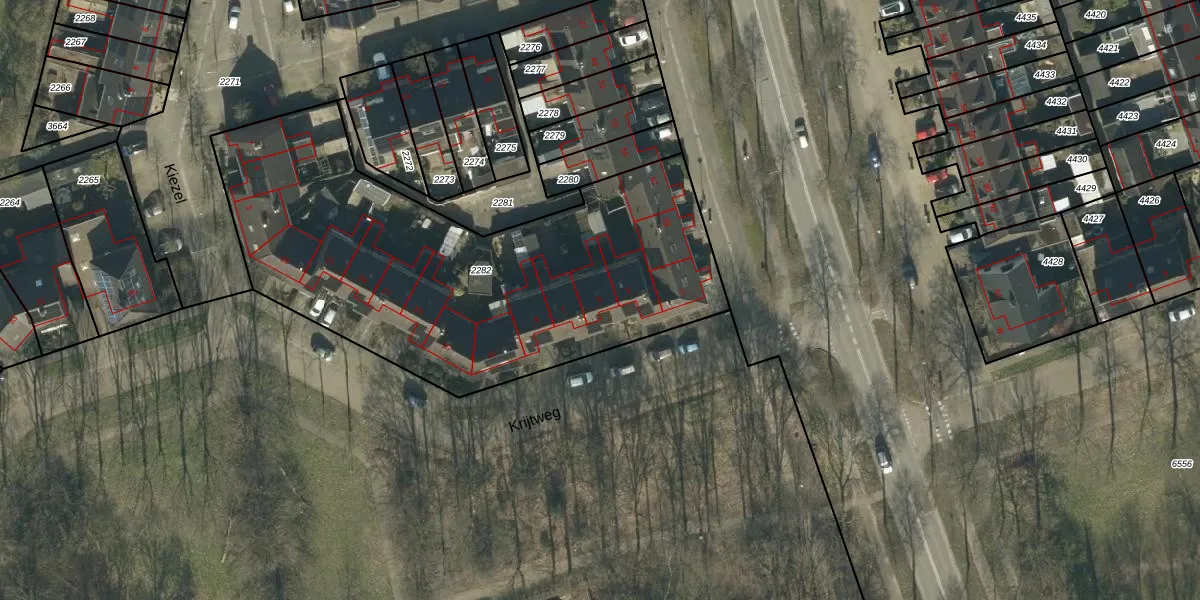 Het perceel waarop Krijtweg 5 staat heeft een oppervlakte van 2316 m². Dit is een zeer groot perceel. De perceeloppervlakte wordt geregistreerd door het Kadaster. Gedetailleerde informatie over de maten van dit perceel kunt u vinden in het rapport Kadastrale kaart met maatvoering van Krijtweg 5.