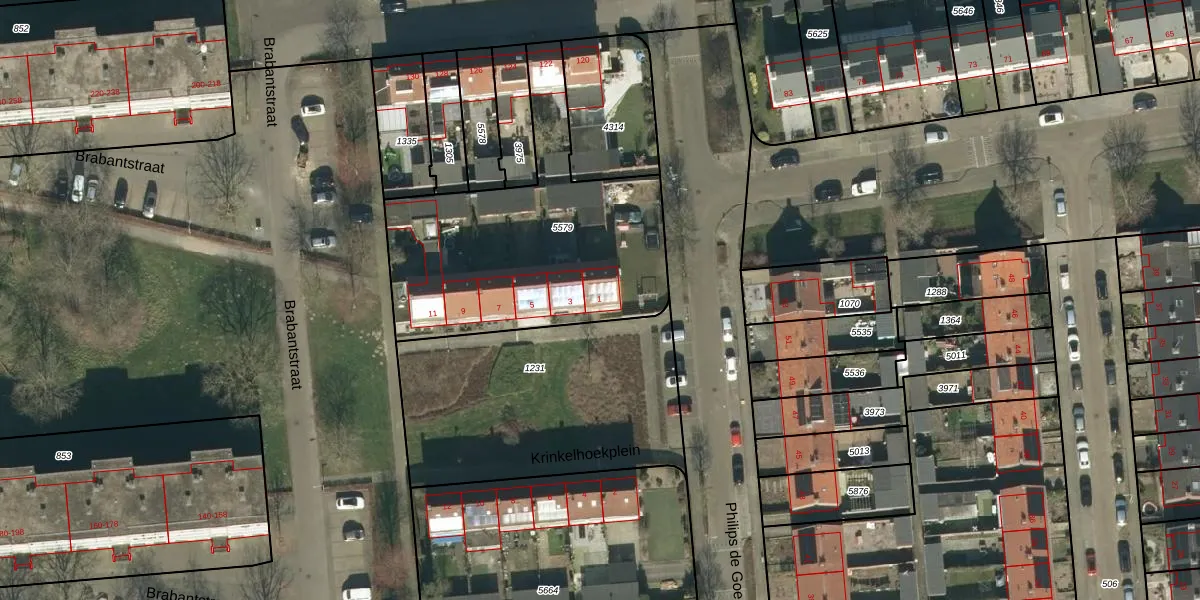 Het perceel waarop Krinkelhoekplein 1 staat heeft een oppervlakte van 1208 m². Dit is een zeer groot perceel. De perceeloppervlakte wordt geregistreerd door het Kadaster. Gedetailleerde informatie over de maten van dit perceel kunt u vinden in het rapport Kadastrale kaart met maatvoering van Krinkelhoekplein 1.