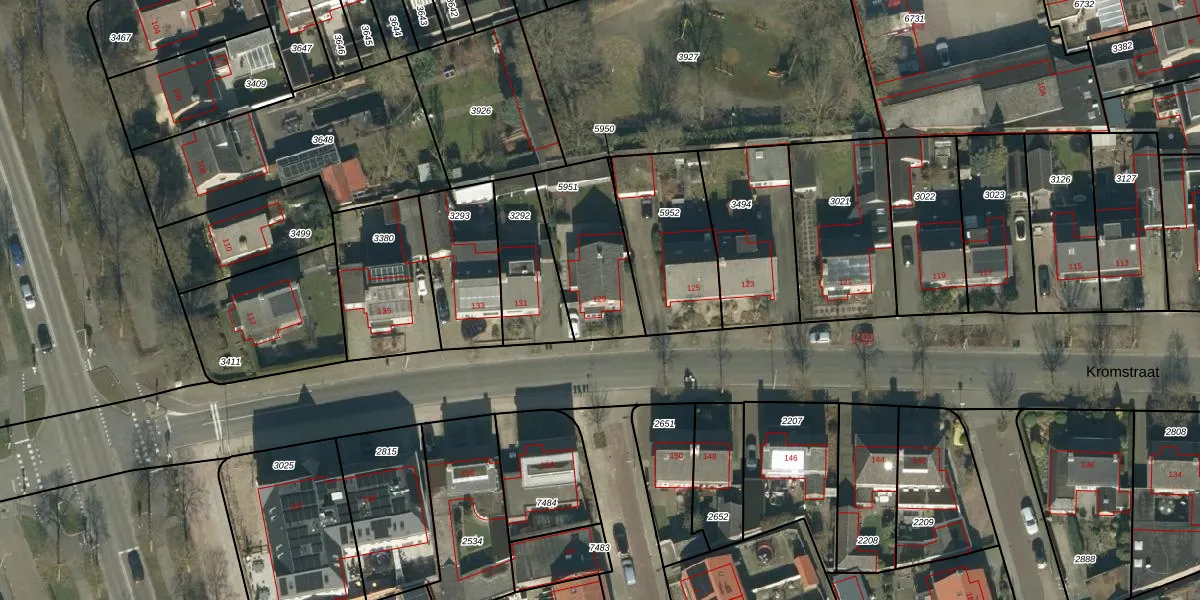Het perceel waarop Kromstraat 129 staat heeft een oppervlakte van 353 m². Dit is een groot perceel. De perceeloppervlakte wordt geregistreerd door het Kadaster. Gedetailleerde informatie over de maten van dit perceel kunt u vinden in het rapport Kadastrale kaart met maatvoering van Kromstraat 129.