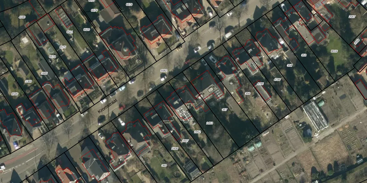 Het perceel waarop Kromstraat 22 staat heeft een oppervlakte van 515 m². Dit is een groot perceel. De perceeloppervlakte wordt geregistreerd door het Kadaster. Gedetailleerde informatie over de maten van dit perceel kunt u vinden in het rapport Kadastrale kaart met maatvoering van Kromstraat 22.