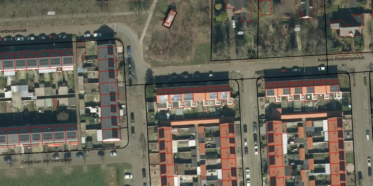 Het perceel waarop Kuipers-Rietbergstraat 174 staat heeft een oppervlakte van 5089 m². Dit is een zeer groot perceel. De perceeloppervlakte wordt geregistreerd door het Kadaster. Gedetailleerde informatie over de maten van dit perceel kunt u vinden in het rapport Kadastrale kaart met maatvoering van Kuipers-Rietbergstraat 174.