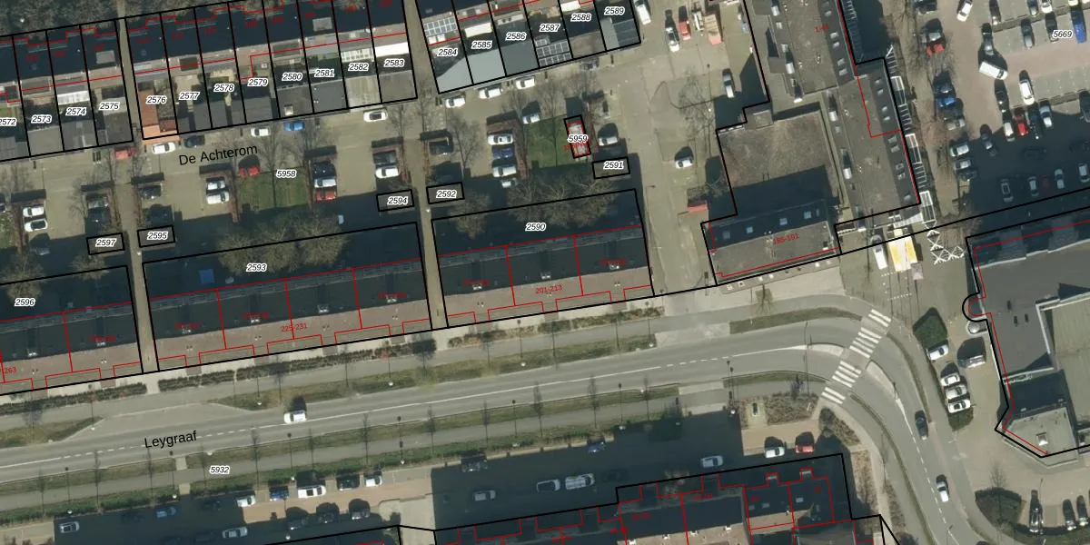 Leygraaf 207 is gelegen op kadastraal perceel OSS00K2590. Deze kadastrale aanduiding is uniek en wordt gebruikt door het Kadaster om eigendomsrechten en andere zakelijke rechten vast te leggen. Het perceel maakt onderdeel uit van de kadastrale gemeente Oss.