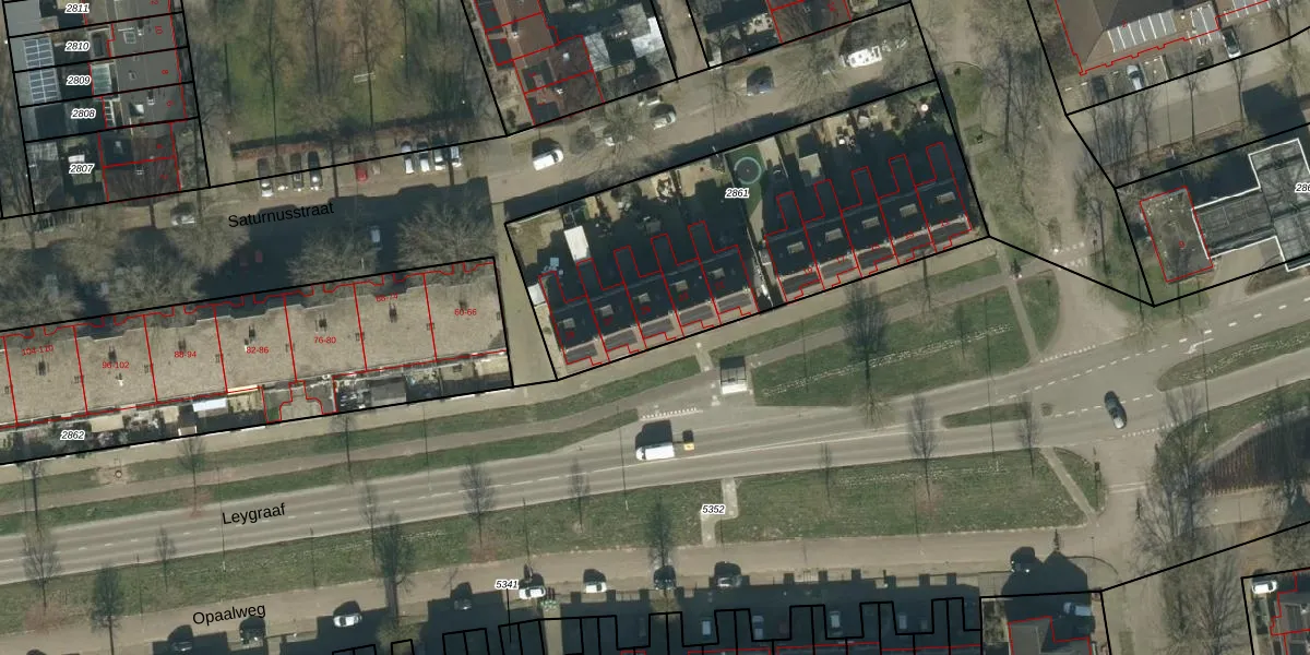 Het perceel waarop Leygraaf 25 staat heeft een oppervlakte van 1754 m². Dit is een zeer groot perceel. De perceeloppervlakte wordt geregistreerd door het Kadaster. Gedetailleerde informatie over de maten van dit perceel kunt u vinden in het rapport Kadastrale kaart met maatvoering van Leygraaf 25.
