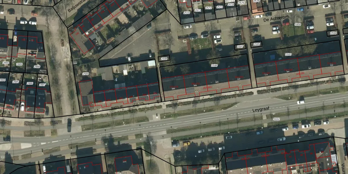 Leygraaf 273 is gelegen op kadastraal perceel OSS00K2596. Deze kadastrale aanduiding is uniek en wordt gebruikt door het Kadaster om eigendomsrechten en andere zakelijke rechten vast te leggen. Het perceel maakt onderdeel uit van de kadastrale gemeente Oss.