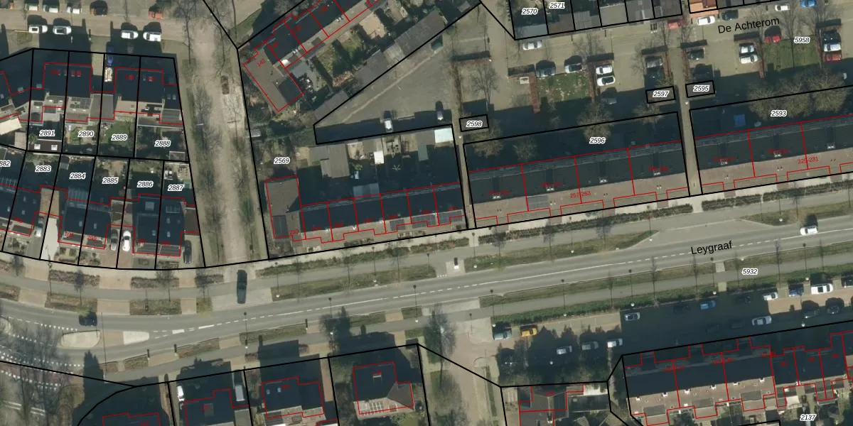 Leygraaf 283 is gelegen op kadastraal perceel OSS00K2569. Deze kadastrale aanduiding is uniek en wordt gebruikt door het Kadaster om eigendomsrechten en andere zakelijke rechten vast te leggen. Het perceel maakt onderdeel uit van de kadastrale gemeente Oss.