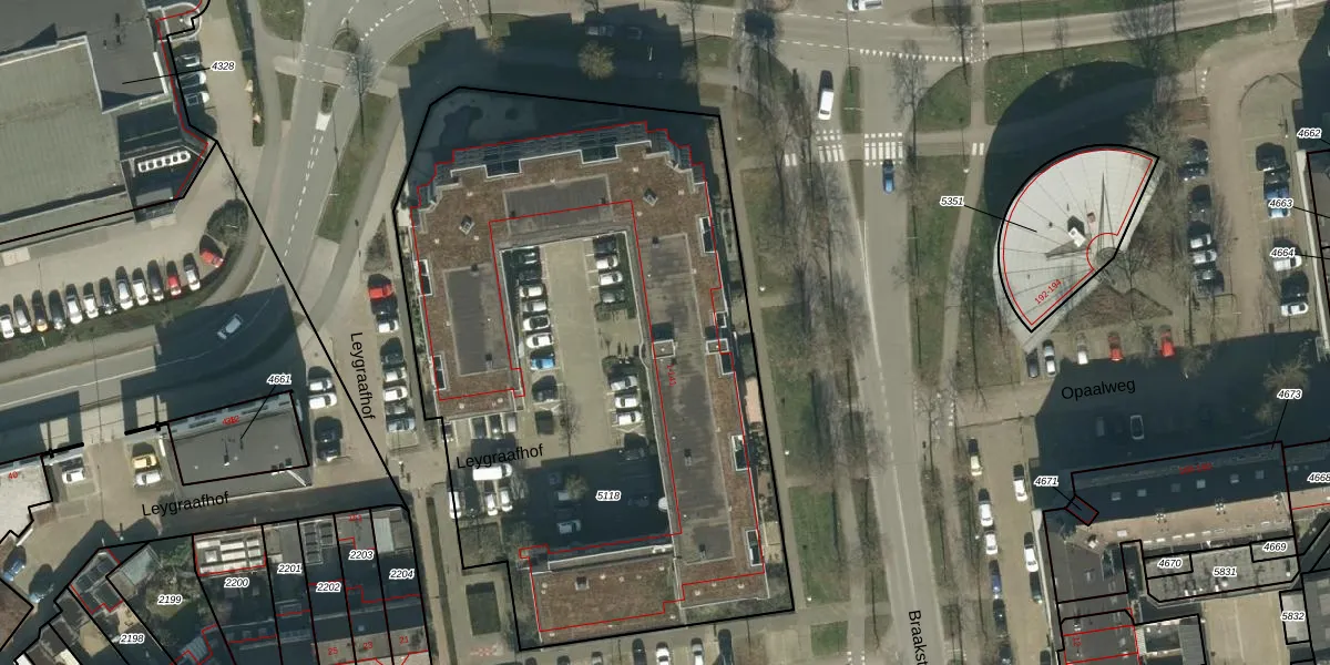 Het perceel waarop Leygraafhof 81 staat heeft een oppervlakte van 3853 m². Dit is een zeer groot perceel. De perceeloppervlakte wordt geregistreerd door het Kadaster. Gedetailleerde informatie over de maten van dit perceel kunt u vinden in het rapport Kadastrale kaart met maatvoering van Leygraafhof 81.