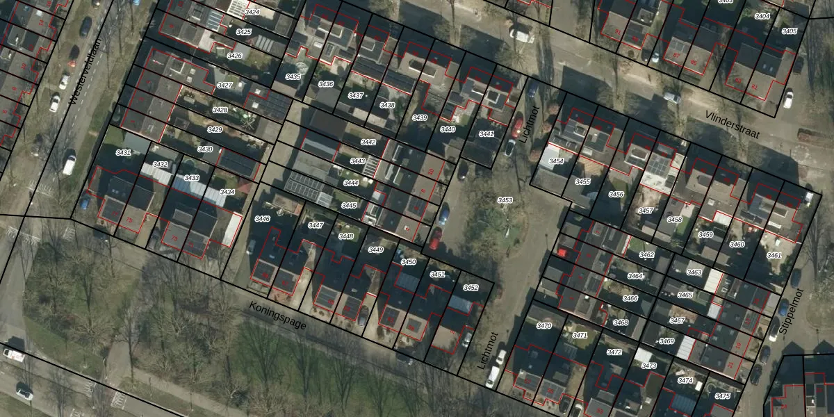 Gebruik de zoekbalk of klik op een perceel voor informatie over de adressen binnen dit perceel.