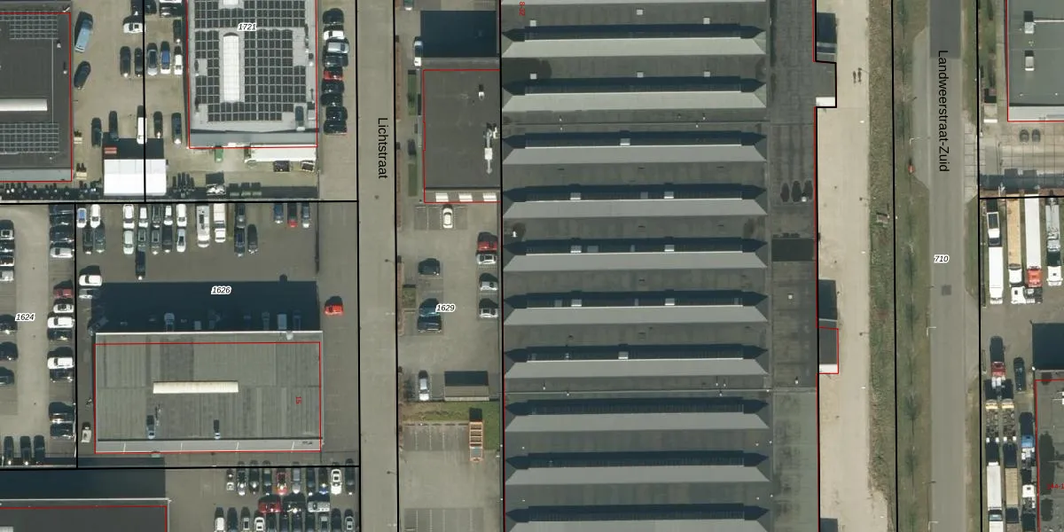 Het perceel waarop Lichtstraat 16 staat heeft een oppervlakte van 2,6 ha. Dit is een zeer groot perceel. De perceeloppervlakte wordt geregistreerd door het Kadaster. Gedetailleerde informatie over de maten van dit perceel kunt u vinden in het rapport Kadastrale kaart met maatvoering van Lichtstraat 16.