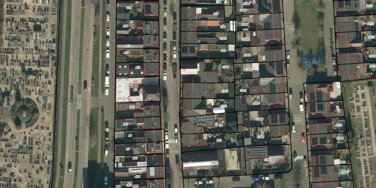 Linkensweg 13-A is gelegen op kadastraal perceel OSS00G1702. Deze kadastrale aanduiding is uniek en wordt gebruikt door het Kadaster om eigendomsrechten en andere zakelijke rechten vast te leggen. Het perceel maakt onderdeel uit van de kadastrale gemeente Oss.