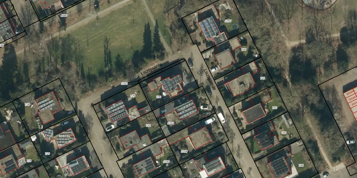 Het perceel waarop Lisztgaarde 13 staat heeft een oppervlakte van 493 m². Dit is een groot perceel. De perceeloppervlakte wordt geregistreerd door het Kadaster. Gedetailleerde informatie over de maten van dit perceel kunt u vinden in het rapport Kadastrale kaart met maatvoering van Lisztgaarde 13.