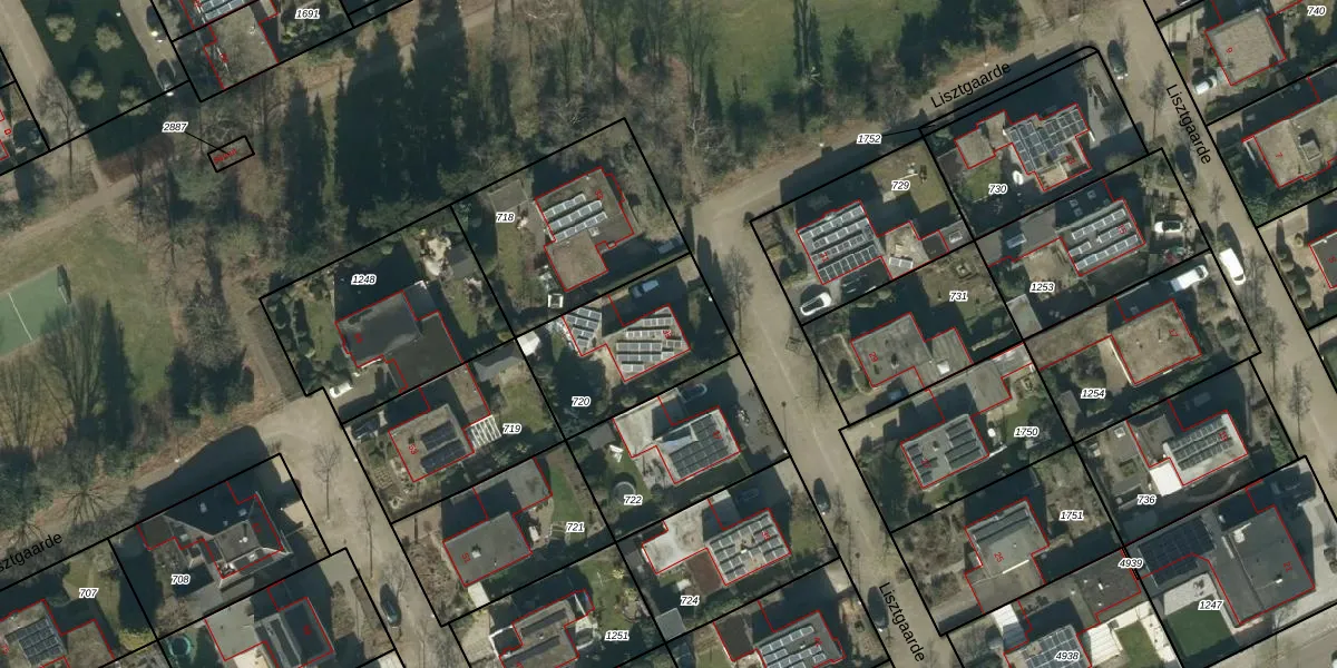 Het perceel waarop Lisztgaarde 35 staat heeft een oppervlakte van 493 m². Dit is een groot perceel. De perceeloppervlakte wordt geregistreerd door het Kadaster. Gedetailleerde informatie over de maten van dit perceel kunt u vinden in het rapport Kadastrale kaart met maatvoering van Lisztgaarde 35.