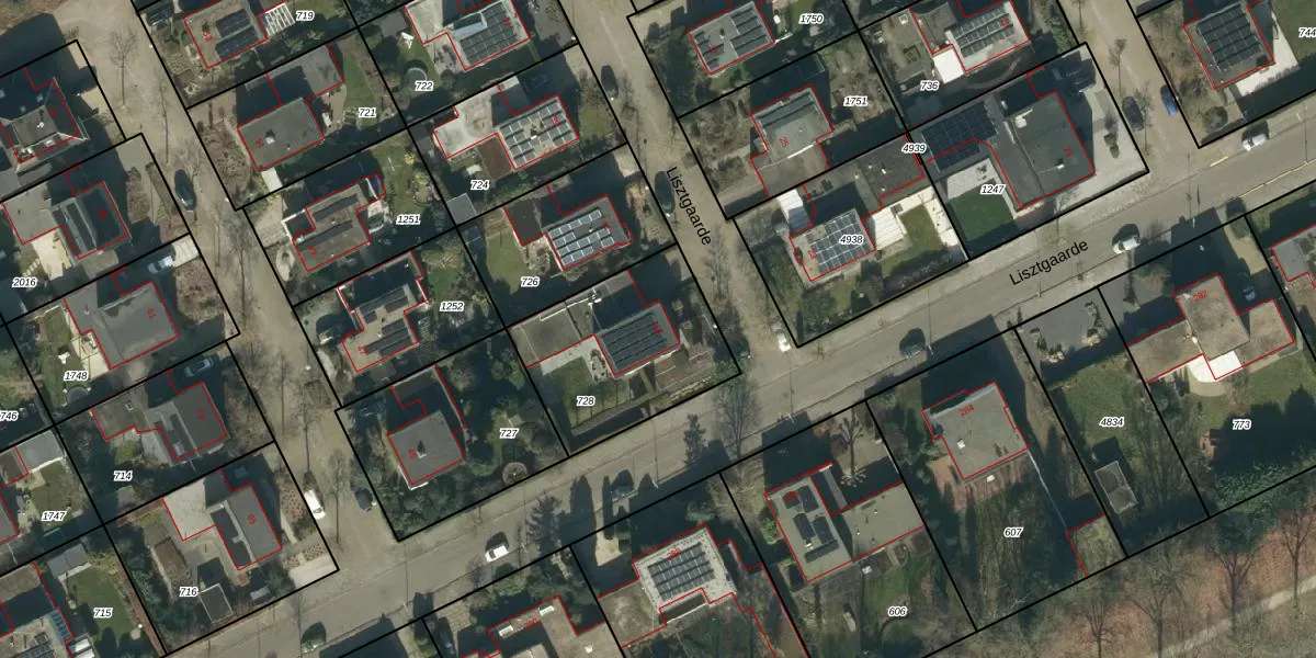 Het perceel waarop Lisztgaarde 43 staat heeft een oppervlakte van 638 m². Dit is een groot perceel. De perceeloppervlakte wordt geregistreerd door het Kadaster. Gedetailleerde informatie over de maten van dit perceel kunt u vinden in het rapport Kadastrale kaart met maatvoering van Lisztgaarde 43.