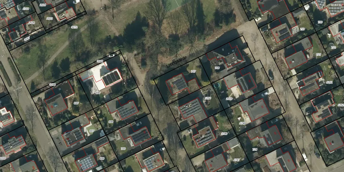 Gebruik de zoekbalk of klik op een perceel voor informatie over de adressen binnen dit perceel.