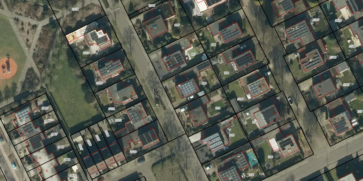 Het perceel waarop Lisztgaarde 95 staat heeft een oppervlakte van 493 m². Dit is een groot perceel. De perceeloppervlakte wordt geregistreerd door het Kadaster. Gedetailleerde informatie over de maten van dit perceel kunt u vinden in het rapport Kadastrale kaart met maatvoering van Lisztgaarde 95.