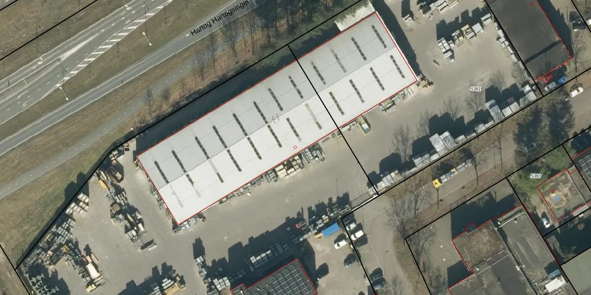 Het perceel waarop Longobardenweg 11 staat heeft een oppervlakte van 9880 m². Dit is een zeer groot perceel. De perceeloppervlakte wordt geregistreerd door het Kadaster. Gedetailleerde informatie over de maten van dit perceel kunt u vinden in het rapport Kadastrale kaart met maatvoering van Longobardenweg 11.