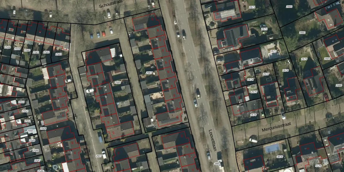 Looveltlaan 36 is gelegen op kadastraal perceel OSS00K2567. Deze kadastrale aanduiding is uniek en wordt gebruikt door het Kadaster om eigendomsrechten en andere zakelijke rechten vast te leggen. Het perceel maakt onderdeel uit van de kadastrale gemeente Oss.