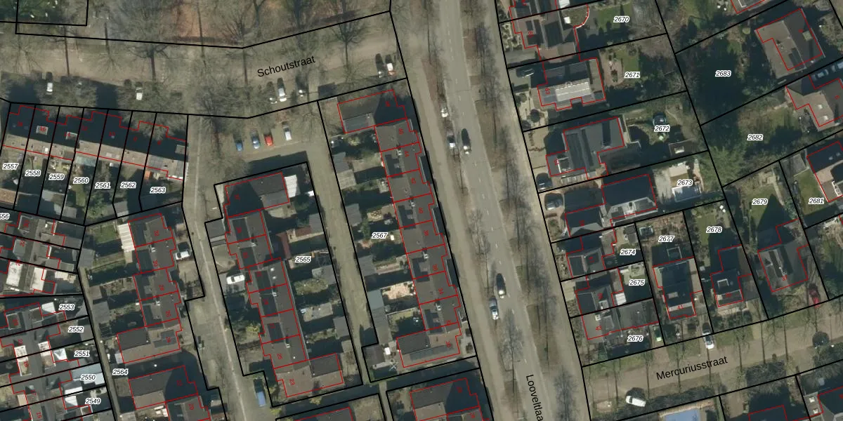 Looveltlaan 40 is gelegen op kadastraal perceel OSS00K2567. Deze kadastrale aanduiding is uniek en wordt gebruikt door het Kadaster om eigendomsrechten en andere zakelijke rechten vast te leggen. Het perceel maakt onderdeel uit van de kadastrale gemeente Oss.
