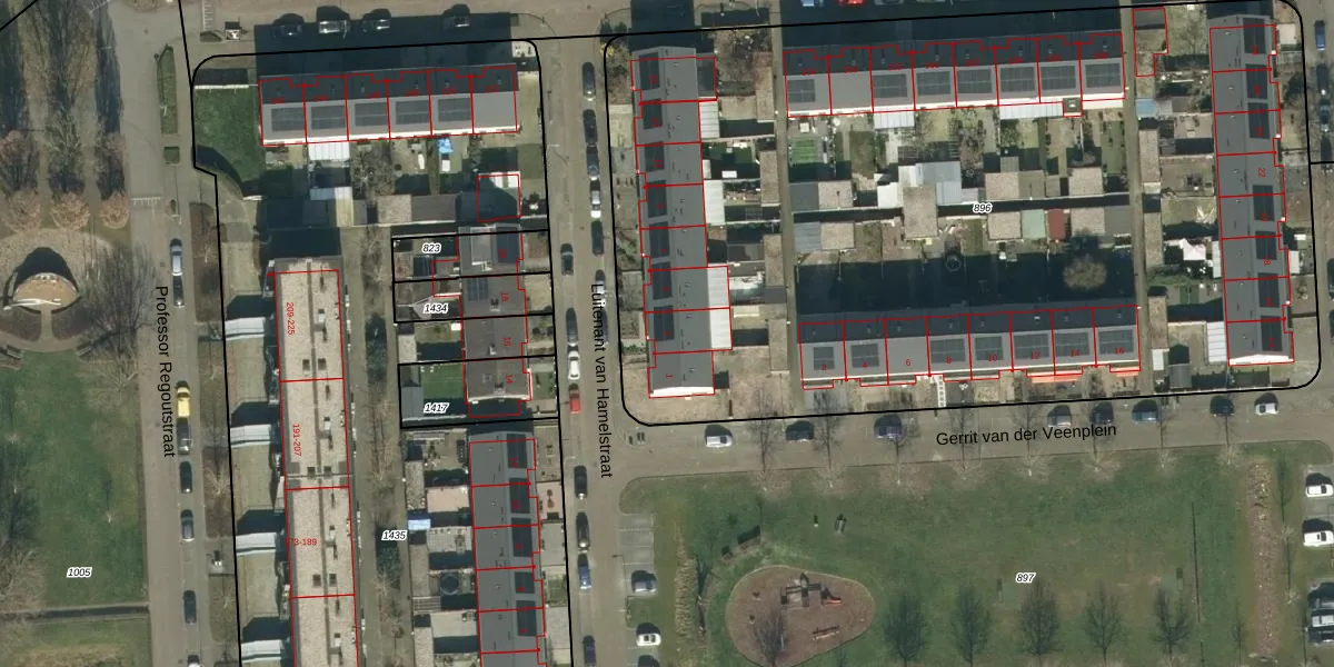 Het perceel waarop Luitenant van Hamelstraat 3 staat heeft een oppervlakte van 6110 m². Dit is een zeer groot perceel. De perceeloppervlakte wordt geregistreerd door het Kadaster. Gedetailleerde informatie over de maten van dit perceel kunt u vinden in het rapport Kadastrale kaart met maatvoering van Luitenant van Hamelstraat 3.