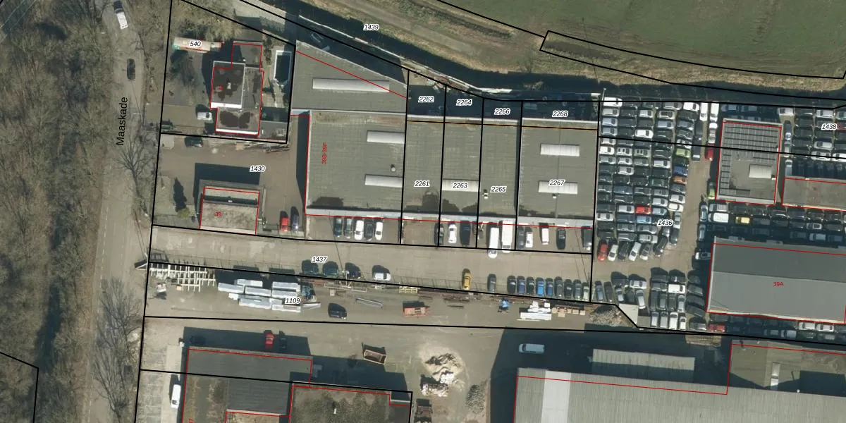 Het perceel waarop Maaskade 39-B staat heeft een oppervlakte van 263 m². Dit is een middelgroot perceel. De perceeloppervlakte wordt geregistreerd door het Kadaster. Gedetailleerde informatie over de maten van dit perceel kunt u vinden in het rapport Kadastrale kaart met maatvoering van Maaskade 39-B.