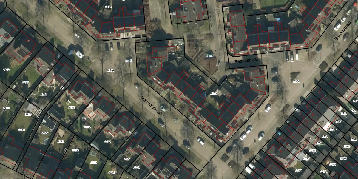 Het perceel waarop Marmerstraat 11 staat heeft een oppervlakte van 2290 m². Dit is een zeer groot perceel. De perceeloppervlakte wordt geregistreerd door het Kadaster. Gedetailleerde informatie over de maten van dit perceel kunt u vinden in het rapport Kadastrale kaart met maatvoering van Marmerstraat 11.