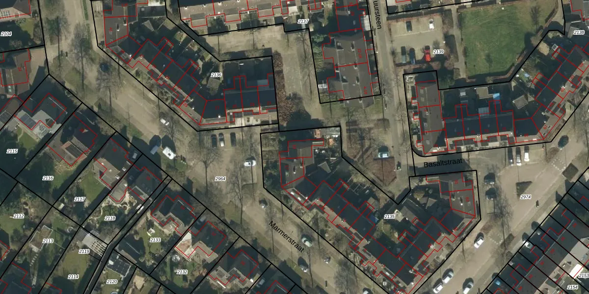 Het perceel waarop Marmerstraat 19 staat heeft een oppervlakte van 2290 m². Dit is een zeer groot perceel. De perceeloppervlakte wordt geregistreerd door het Kadaster. Gedetailleerde informatie over de maten van dit perceel kunt u vinden in het rapport Kadastrale kaart met maatvoering van Marmerstraat 19.