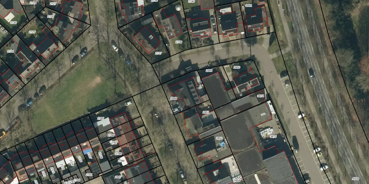 Gebruik de zoekbalk of klik op een perceel voor informatie over de adressen binnen dit perceel.