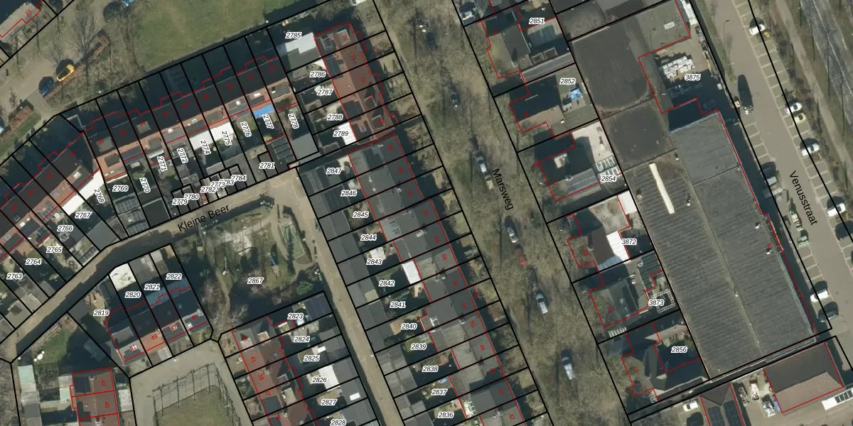 Gebruik de zoekbalk of klik op een perceel voor informatie over de adressen binnen dit perceel.