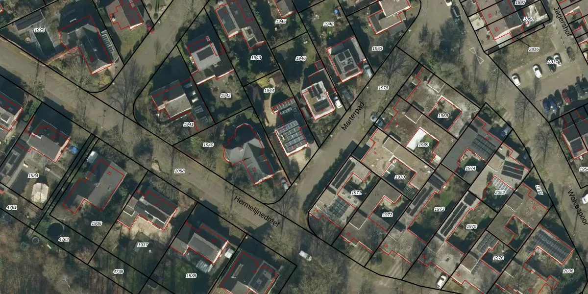 Gebruik de zoekbalk of klik op een perceel voor informatie over de adressen binnen dit perceel.