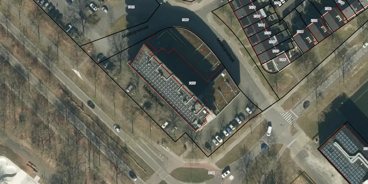 Medicijnstraat 100 is gelegen op kadastraal perceel OSS00E7455. Deze kadastrale aanduiding is uniek en wordt gebruikt door het Kadaster om eigendomsrechten en andere zakelijke rechten vast te leggen. Het perceel maakt onderdeel uit van de kadastrale gemeente Oss.