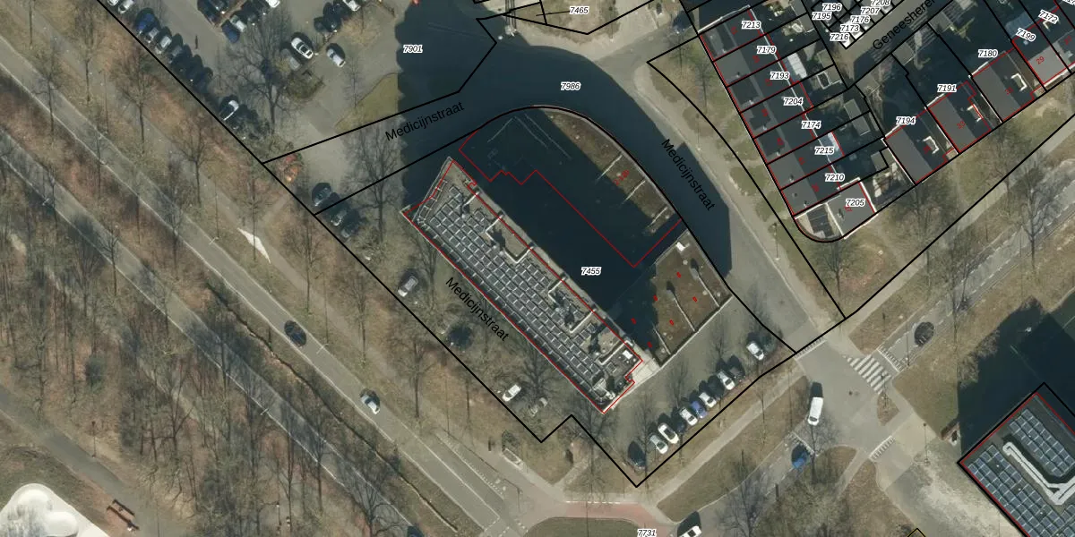 Het perceel waarop Medicijnstraat 102 staat heeft een oppervlakte van 3260 m². Dit is een zeer groot perceel. De perceeloppervlakte wordt geregistreerd door het Kadaster. Gedetailleerde informatie over de maten van dit perceel kunt u vinden in het rapport Kadastrale kaart met maatvoering van Medicijnstraat 102.