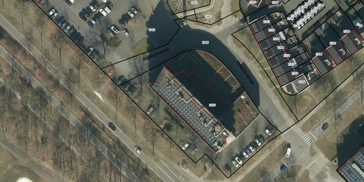 Het perceel waarop Medicijnstraat 104 staat heeft een oppervlakte van 3260 m². Dit is een zeer groot perceel. De perceeloppervlakte wordt geregistreerd door het Kadaster. Gedetailleerde informatie over de maten van dit perceel kunt u vinden in het rapport Kadastrale kaart met maatvoering van Medicijnstraat 104.